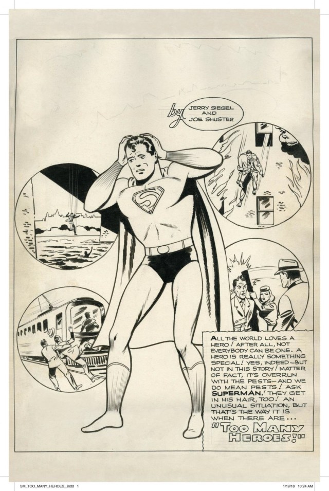 As far as new material goes, included in this volume is a new five-page story by Levitz and Neal Adams (who sadly seems a shell of what he used to be as an artist), and a well-publicized “lost” story by Jerry and the Shuster studio, which for years sat in the personal collection of Marv Wolfman, unpublished. Wolfman expounds on how he came to possess this story in his essay which precedes it, how it was given to him when touring the DC offices as a kid. While many reviews I read said the unpublished story was weak, and thus never printed, I actually thought it was pretty good! Certainly there are very simple Golden Age stories like it. I found it and the Adams story to be a nice feature, perfectly placed in a book like this one.