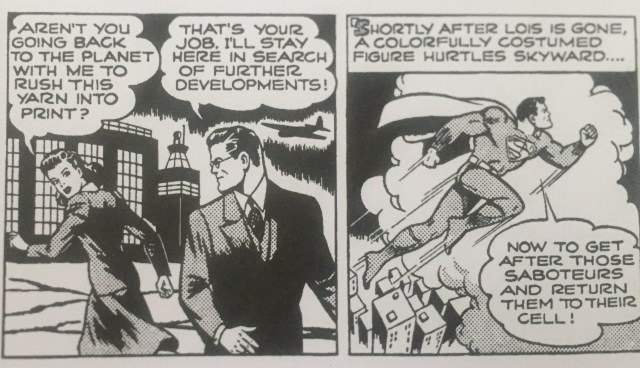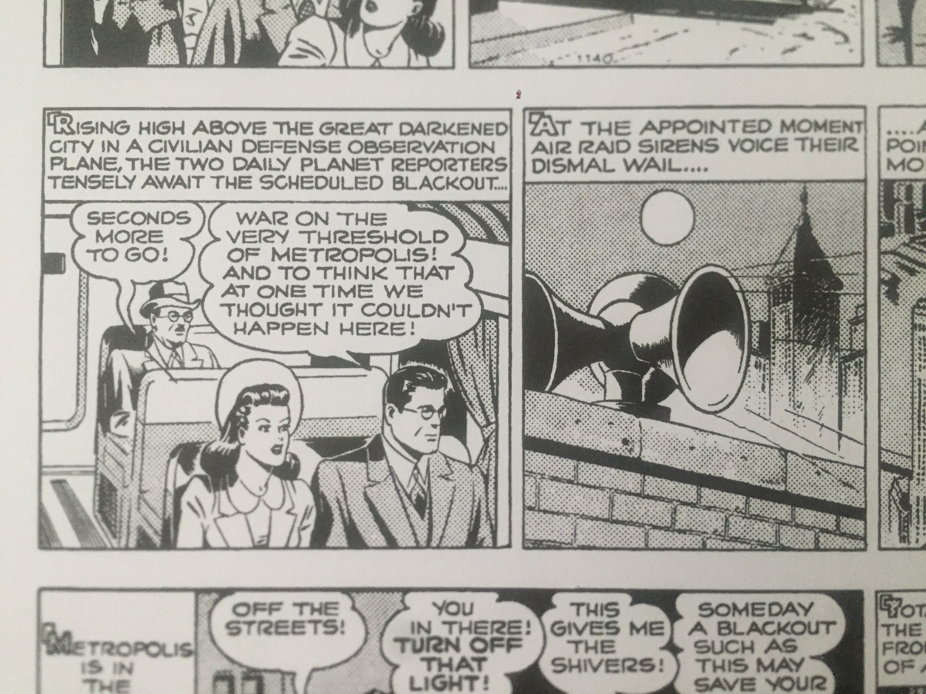 As far as the stories go, I absolutely loved seeing Superman face to face with the war in a way that is not found in the comics. Almost every bad guy of the first year of this collection is either Nazis, Japanese, or fifth columnists, which often leads Superman to face off against airplanes, ships and submarines. The stories are very clearly war time propaganda, for better or worse, and likely blended nicely with other topics that folks were reading in the newspaper. Some plotlines include Lois and Clark being sent to England as war correspondents, visiting a Japanese internment camp, and Metropolis practicing drills during a blackout. While no story in this volume is about Superman halting the Nazi war machine or Japanese empire directly, the war is tied in much more heavily than anywhere else in the character’s history, and I thoroughly enjoyed it.