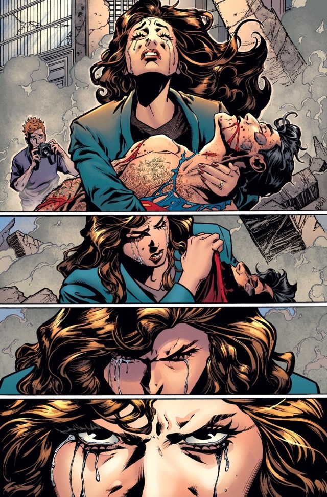 The premise of “Tales of the Dark Multiverse: The Death of Superman” was essentially exploring the idea of how Superman’s death and return would have played out if the Eradicator had joined with Lois Lane. As we know from the original “Reign of the Supermen,” the Eradicator was the only one of the four Supermen that appeared after Supes’ death who openly embraced violence to defeat criminals. His approach to Superman’s mission was often not unlike that of many other Wolverine/Ghost Rider/Punisher-esque heroes of the ‘90s, very fashionable for that period. But combine this with Lois Lane’s agony over her fiancé’s death, and you have a character who basically comes unglued from the beginning. How she would stop crime, carry on the fight for truth, justice, and the American way, and what Superman would think when he finally does come back, are some of the waters the book dives into.