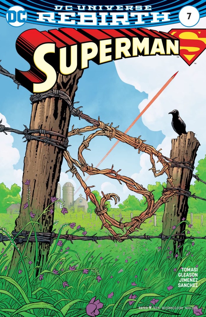 I love this issue because Tomasi and Gleason, unashamed, basically just show Superman being a dad. I also love “down time” issues made famous by Claremont’s X-Men, which make for a nice change of pace after world threatening danger. Of note also is this is the first issue drawn by Jorge Jimenez, who would go on to do many more Superman Rebirth stories and eventually Super Sons.