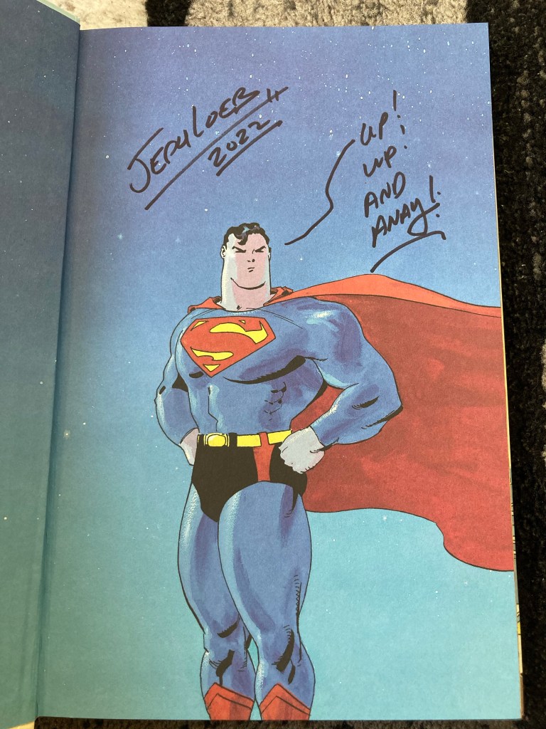 Because that limited my options significantly, I had to pick one creator in addition to Jim Lee to sign, preferably someone connected with Superman. I ultimately decided to get my deluxe hardcover of Superman For All Seasons to be signed by Jeph Loeb, as the story has really grown on me over the years.