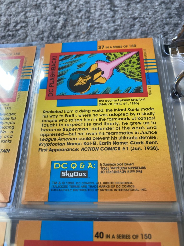 I was on the fence about keeping them or not, since a lot of the set consists of flash in the pan characters of that period, but because of the Superman content I decided to stick it out (I’m also a Green Lantern fan and there’s some great material from that book too). The pictures sprinkled throughout this post are mostly from the binder and card pages I recently bought in order to keep it on my shelf.