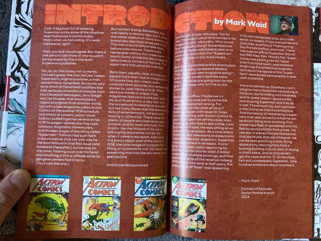 The book has some great content too! Mark Waid- someone with big time pedigree- writes a two-page introduction to the collection that talks about the history of Superman as a character. The rest of the book is divided into two parts, one for one page drawings and the second for two-page spreads.