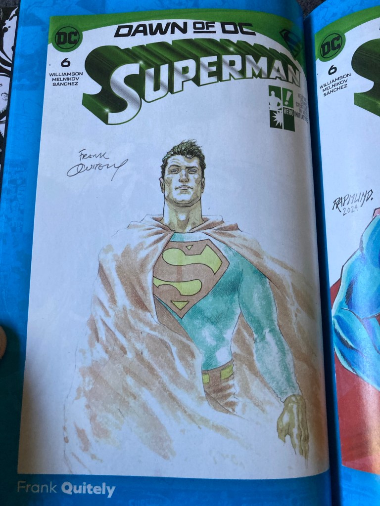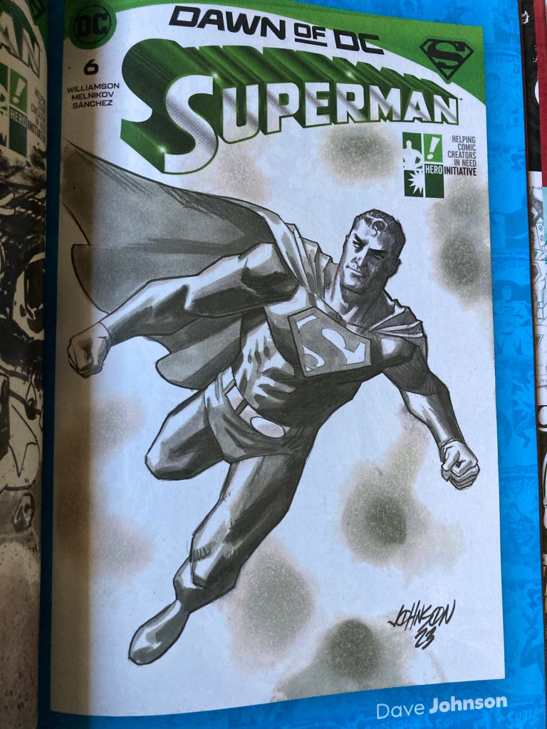 One more note on something I’m less than crazy about, I also wish the sketches were done on blank pages. I get that these are published issues meant to garner attention from the public, but it feels like it takes away a “timeless” quality to have it stuck in a certain month of the present day, if that makes sense. I couldn’t care less about “Dawn of DC” or whatever vanilla stuff they’re doing with the brand right now. I’d much prefer maybe just a blank page or at most just a plain DC or Superman logo.