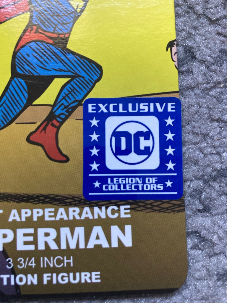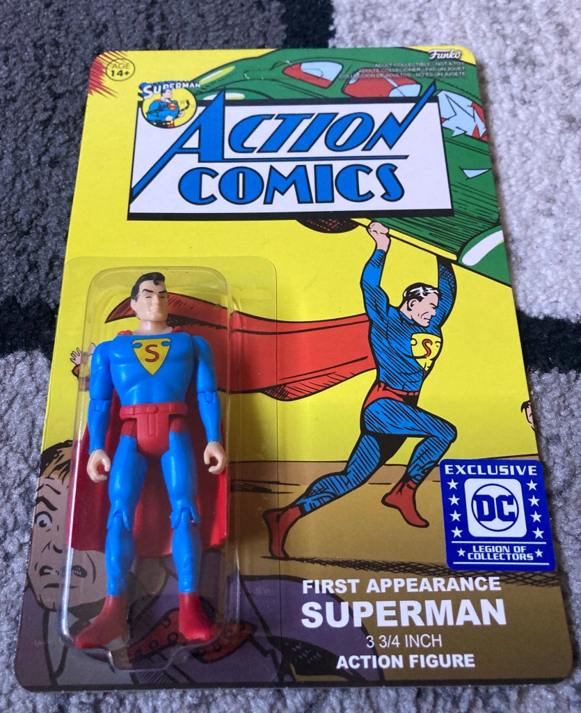 Although not famous for the action figures per se, Funko did release a first appearance Superman as part of their DC Legion of Collectors subscription package back then. Along with the usual “loot” items like t-shirts, keychains and stickers, this beautiful figure came in a Superman themed box and it is fantastic! It looks sufficiently retro and beautifully designed to fit with the zoomed cover image that makes up the card.