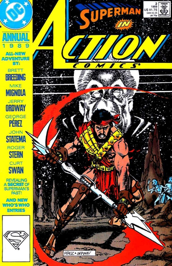Digging through a bargain bin many years ago, I stumbled onto a copy of Action Comics Annual #2, a chapter halfway through “Exile.” In it, Superman, stripped of much of his power, grizzled, bearded, and axe-wielding, has been captured by slavers and forced to fight in intergalactic gladiatorial battles on Warworld.