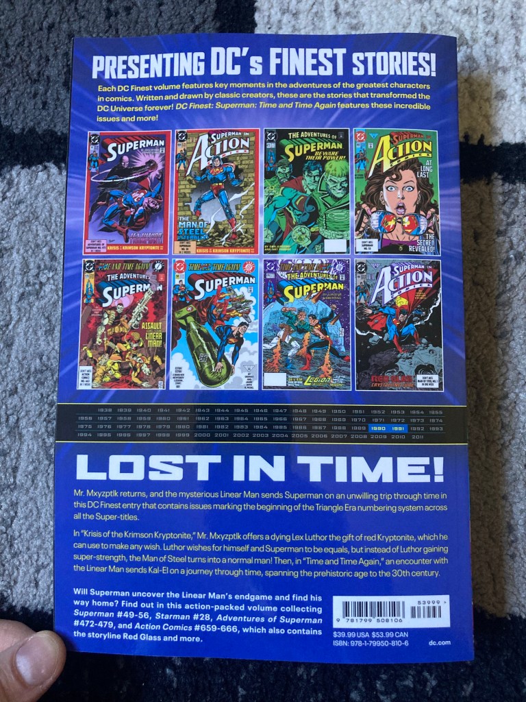 … and I have finally bought my first Superman edition!! The inaugural addition to my collection in this series- which I fully expect to one day cover many years of Superman books- is named after the now classic “Time and Time Again,” and contains several wonderful stories from that time.