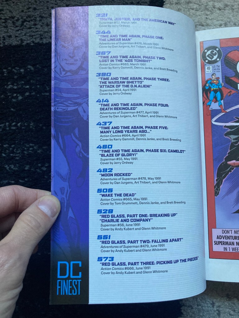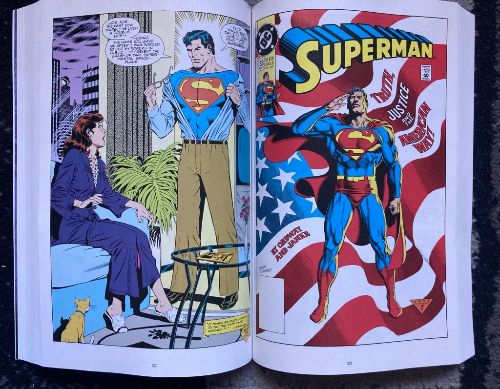 The front cover, back cover and spine all look fantastic, giving the viewer a snapshot of the stories collected and what years they’re from. The design works nicely for Superman and for any DC comic. I look forward to many more!